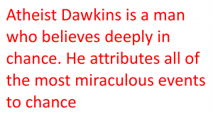 Dawkins’ belief in the power of chance is stronger than many people’s belief in the existence of God.